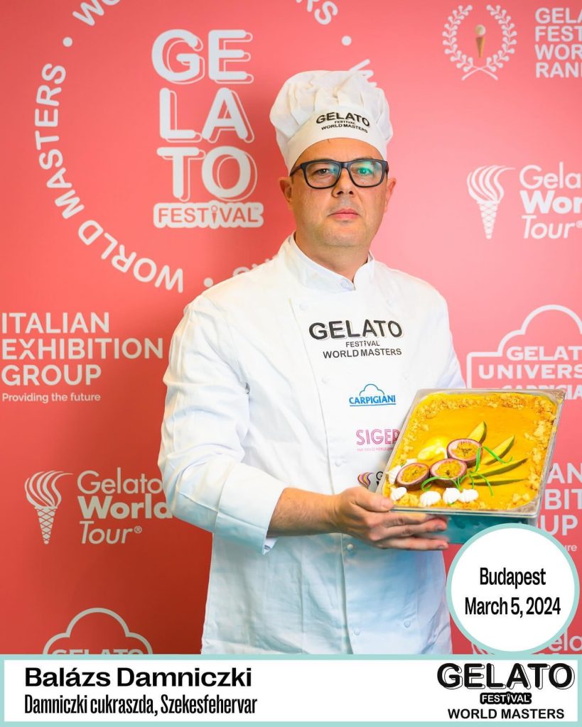 A Carpigiani nevű cég gyakorlatilag a világ összes pontján megtalálható, eszközeik a fagylaltozók, cukrászdák – mondhatni – alapkellékei. A gépgyártás mellett tanfolyamokat is tartanak, valamint bizonyos időközönként versenyt szerveznek, amelynek keretében előbb országosan, majd regionálisan, végül pedig világszinten megmérethetik magukat a fagylaltok kreatív készítői. Damniczki Balázs régebb óta versenyzője már a megmérettetésnek; 2017-ben az európai bajnoki döntőbe került. A március 5-i, keddi, budapesti, Gelato Festival World Masters névre hallgató versengés a magyarországi forduló volt, innen jutott tovább a fehérvári érdekeltségű cukrászmester a jövő évben megrendezendő regionális döntőbe, ahonnan egy versenytársával közösen esélye lesz “kvalifikáltatni” magát a még több országot megmozgató bajnokságra.