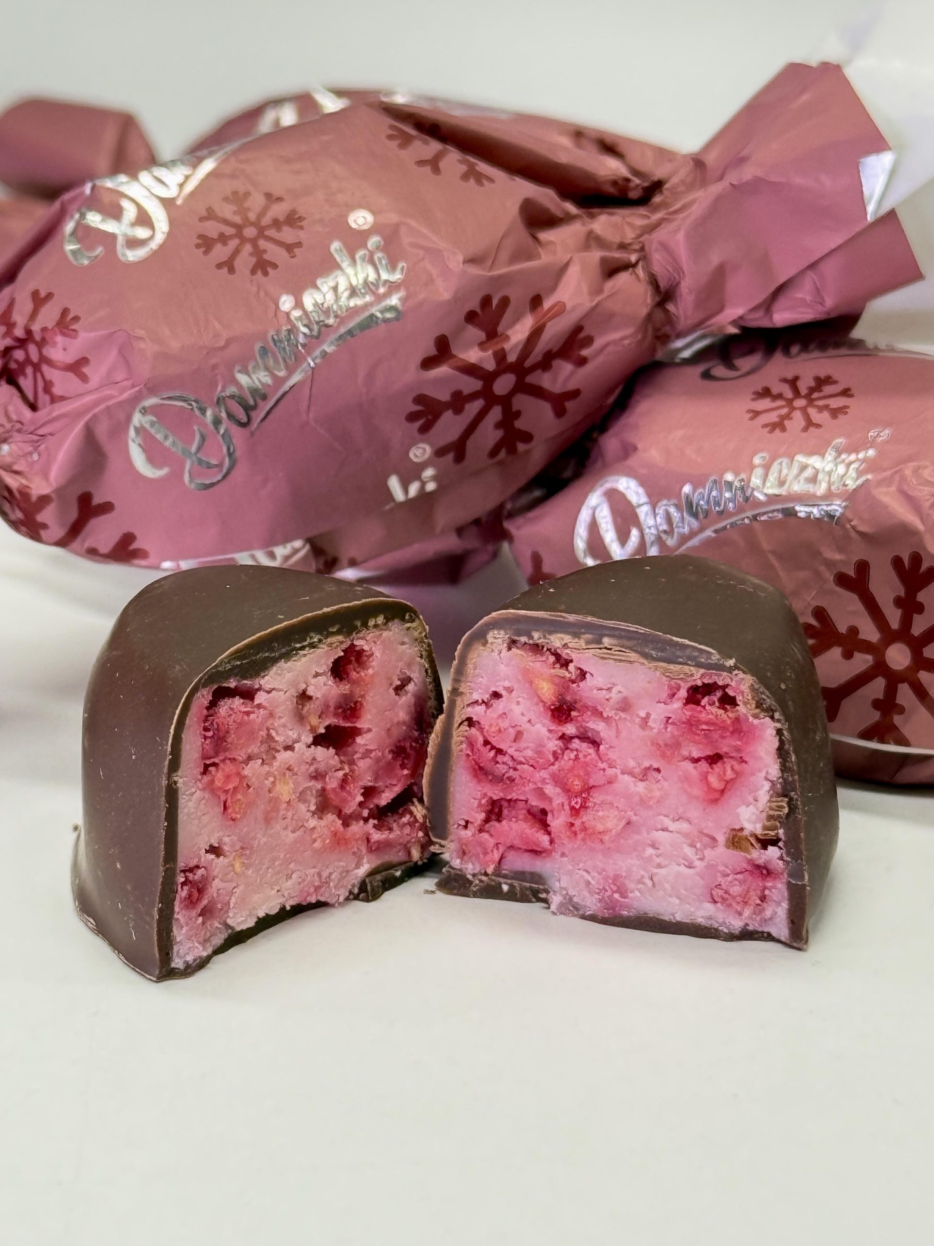 A cukormentes málnás fehércsokoládés szaloncukor tökéletes harmóniát teremt a savas málna és az édes fehércsokoládé között. Valódi málnavelővel és ropogós liofilizált málnadarabokkal készül. Ez a kézműves szaloncukor hozzáadott cukor nélkül, mégis intenzív, gyümölcsös ízvilágával kínál elegáns ünnepi élményt.
